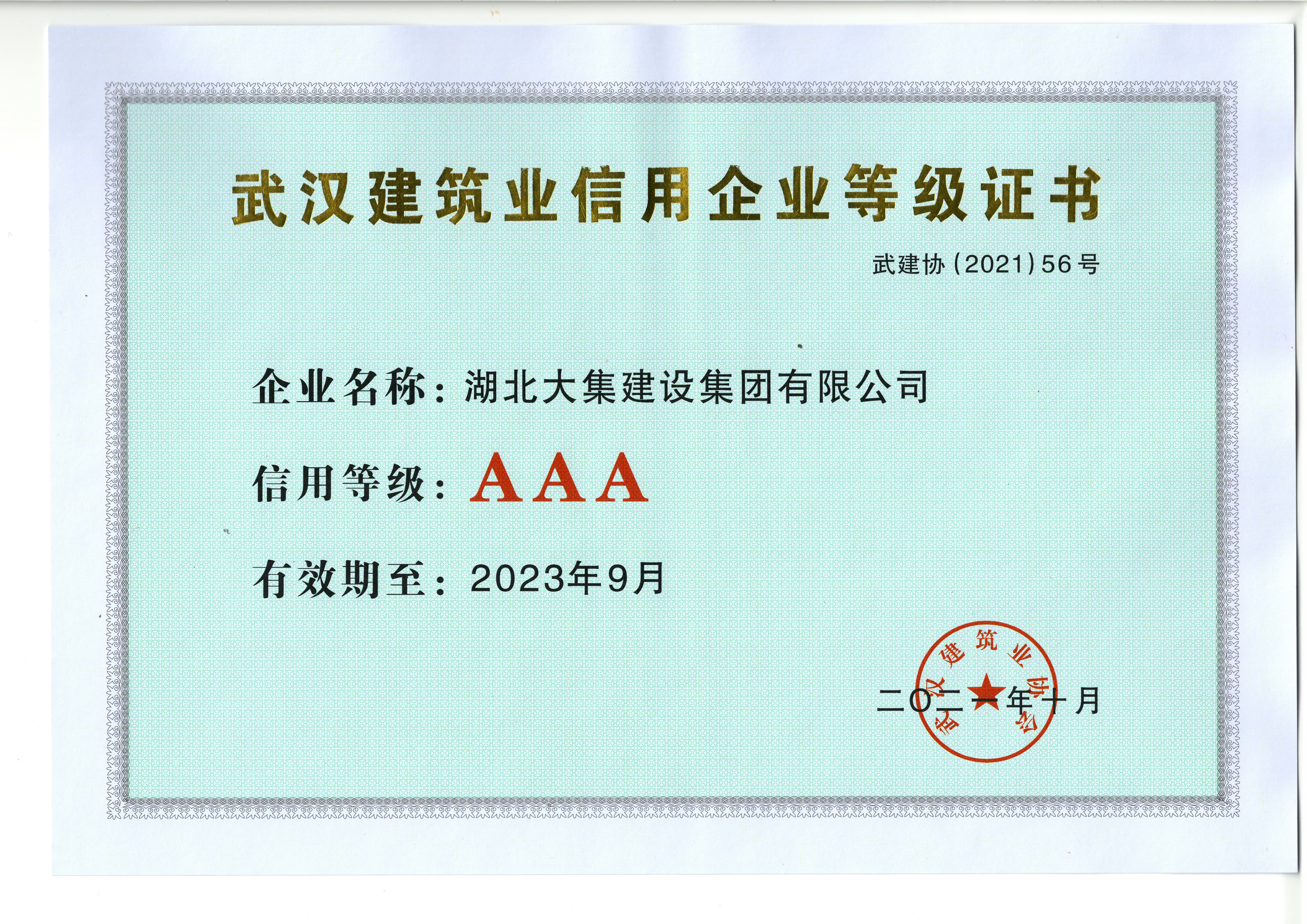 近日,武漢市建筑業(yè)協(xié)會發(fā)布2019-2020年度信用企業(yè)評價(jià)結(jié)果,湖北大集建設(shè)集團(tuán)再次獲評“武漢建筑業(yè)AAA信用企業(yè)”。