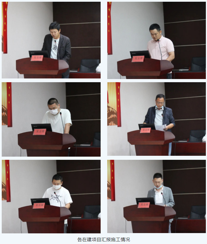 會上,漢陽加州幼兒園項目、世茂48#地塊項目、大集G區(qū)蓮溪花園項目、常貴路西延伸段項目、侏儒山群力村美麗鄉(xiāng)村項目、泰禾君悅花園項目先后對項目上月產(chǎn)值完成情況、現(xiàn)場施工情況、施工中存在的問題以及本月計劃施工產(chǎn)值及相應施工安排進行匯報。工程部部長王均家結(jié)合各項目匯報的情況依次進行點評指導。