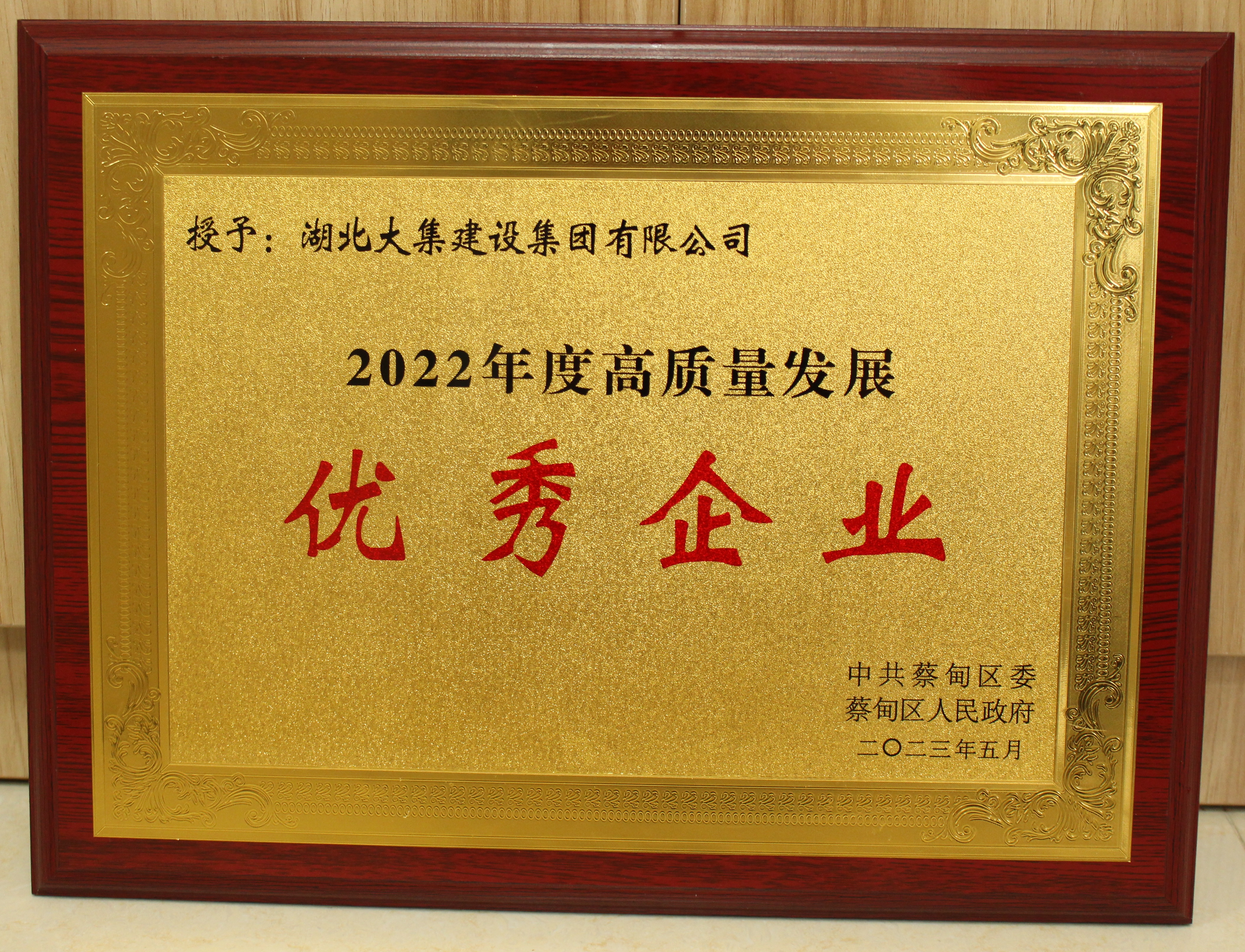 5月31日上午,中共蔡甸區(qū)委、蔡甸區(qū)人民政府組織召開了“蔡甸區(qū)學習大灣區(qū)經驗推動高質量發(fā)展大會”。大會表揚了一批突出貢獻企業(yè)和優(yōu)秀企業(yè),湖北大集建設集團有限公司榮獲“2022年度高質量發(fā)展優(yōu)秀企業(yè)”榮譽稱號。