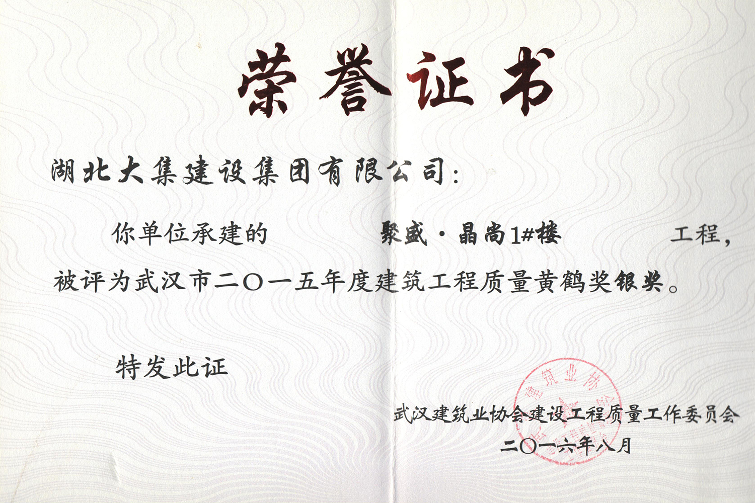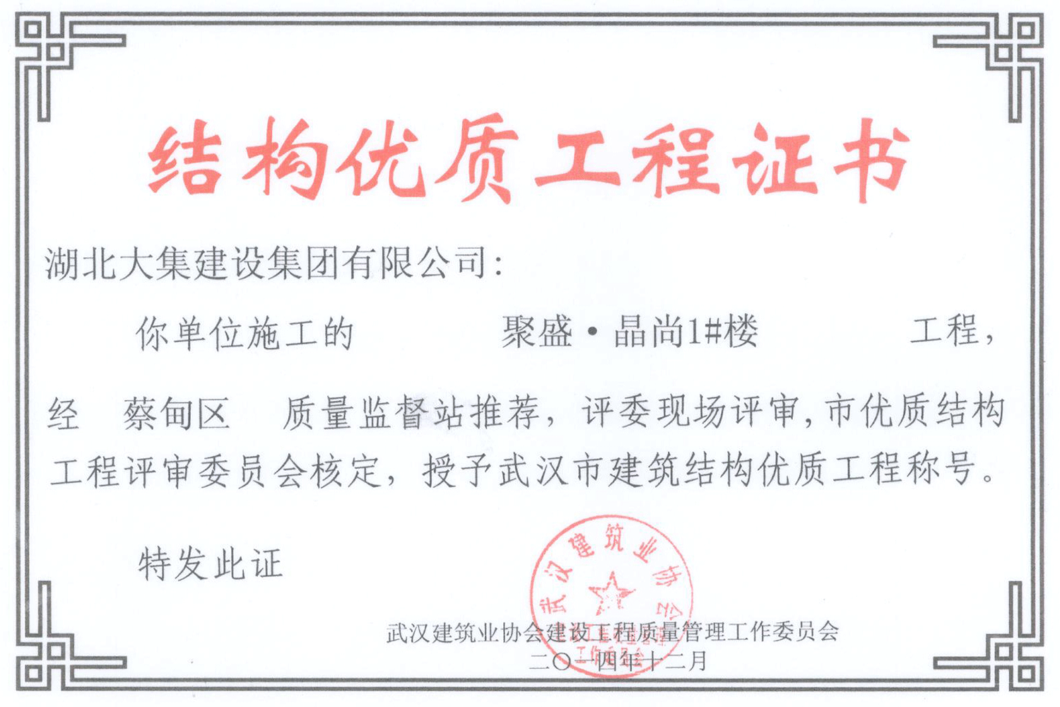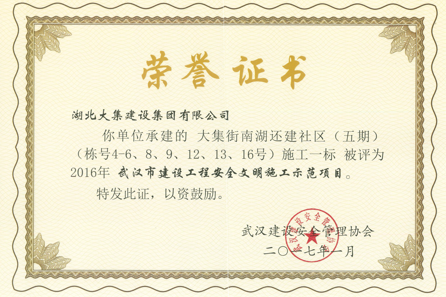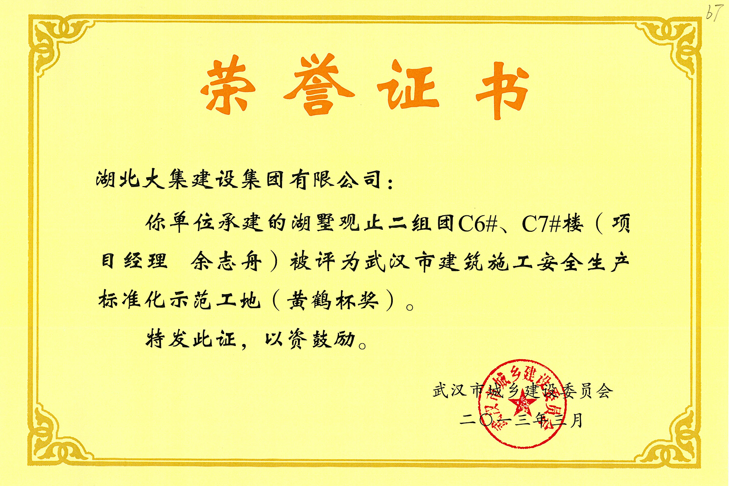 集團秉持“安全是紅線,質(zhì)量是品牌,文明施工是形象”的企業(yè)宗旨,不斷加強全面管理,注重提高自身素質(zhì),以完美的履約、優(yōu)良的質(zhì)量、滿意的服務(wù),贏得了信譽。近年來,湖北大集建設(shè)集團先后與中石化集團、中鐵上海工程局、中建八局、中鐵十二局、碧桂園集團、世茂集團、綠地集團等央企、國企、地方標志性建設(shè)單位合作,先后承建了“碧桂園知音豪庭”項目、“碧桂園光谷云境”項目、“大集G區(qū)蓮溪花園”項目等多個高層住宅小區(qū);承建了世茂龍灣46#、47#、48#地塊、花博匯桃李春風(fēng)二期等多個精品高端別墅群項目;承建了“南湖中學(xué)”、“南湖小學(xué)”、“南湖幼兒園”、“博奧幼兒園”等多個教育配套項目;承建了“孝感英眾超算終端科技產(chǎn)業(yè)園”、“鴻盛華全球航空服務(wù)產(chǎn)業(yè)園”、“盟盛汽車產(chǎn)業(yè)園”、“中原印務(wù)晶毅”等多個具有特殊設(shè)備安裝需求的鋼、混結(jié)構(gòu)工業(yè)廠房項目;承建了“常福商務(wù)廣場”等大型商業(yè)綜合體;承建了后官湖綠道二期、三期,常貴路西延伸段、黃星大道等多條大型道路市政項目;自主開發(fā)了“聚盛晶尚”住宅項目,改善人居環(huán)境,引領(lǐng)綠色棲居新領(lǐng)域;所有工程嚴格執(zhí)行施工作業(yè)全過程質(zhì)量、安全管理,多個項目被省、市級監(jiān)管單位授予“省結(jié)構(gòu)優(yōu)質(zhì)”、“省安全文明施工現(xiàn)場”、“市結(jié)構(gòu)優(yōu)質(zhì)”、“市安全文明施工示范項目”、“樣板工地”等榮譽稱號。