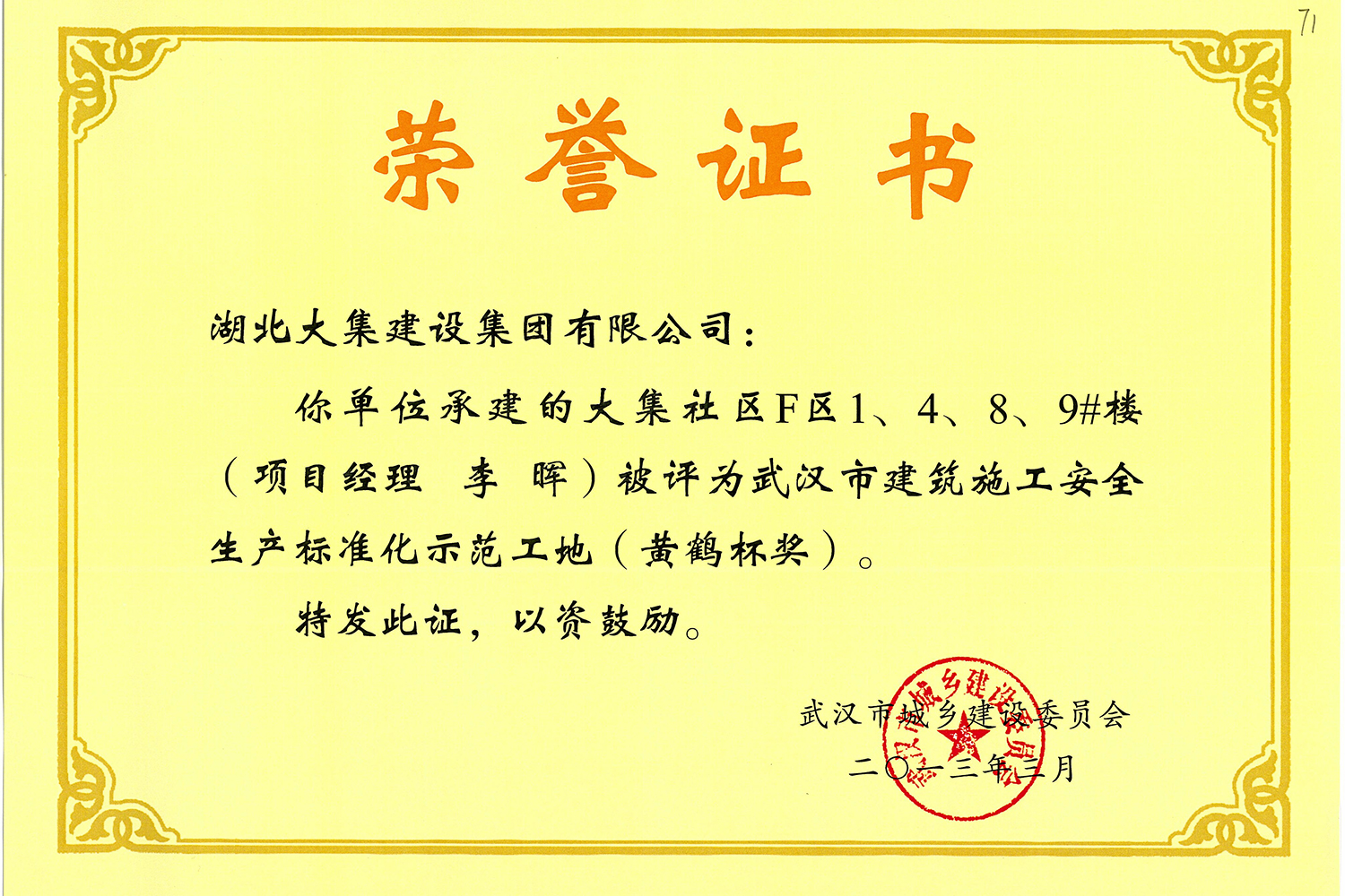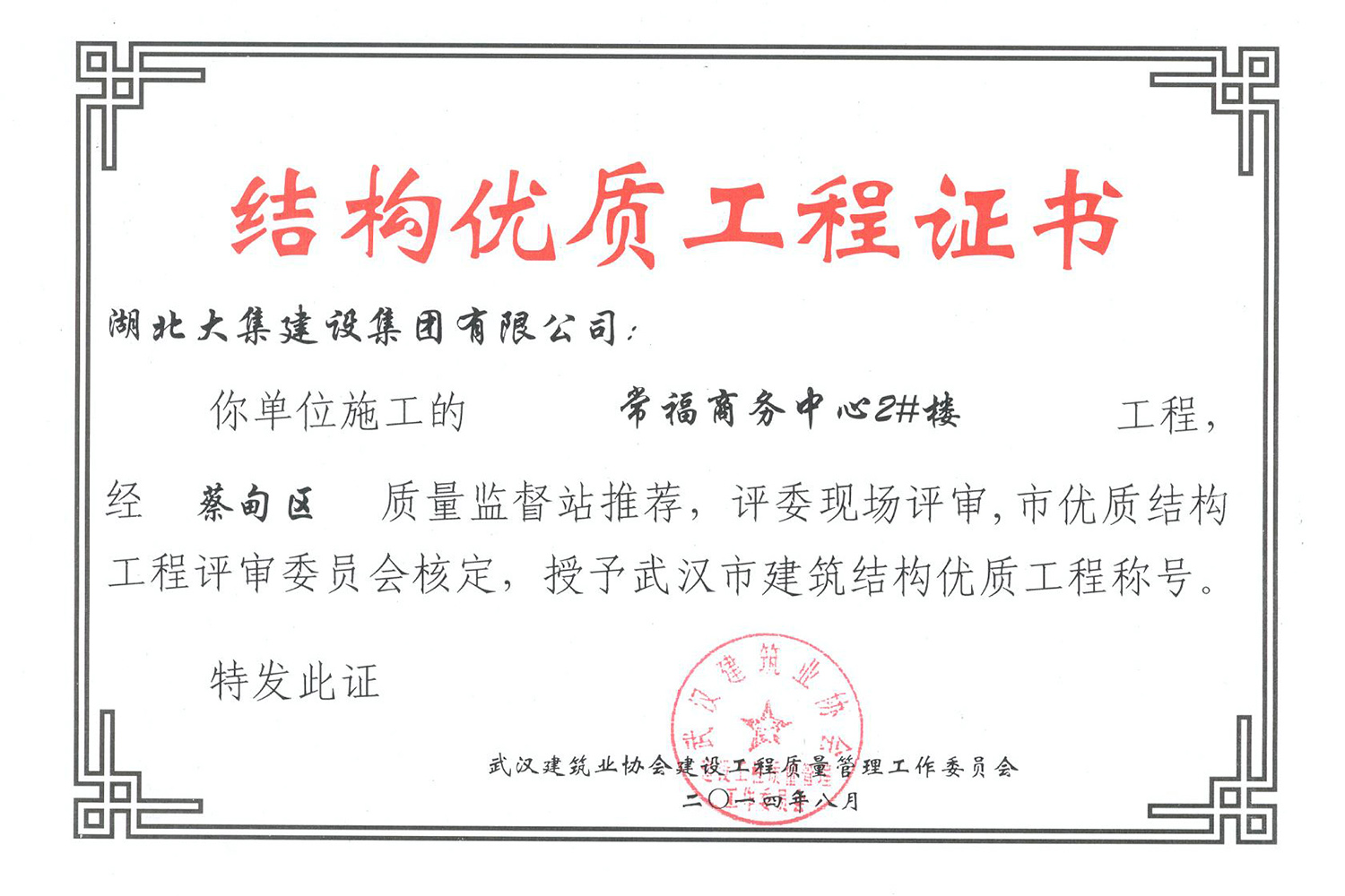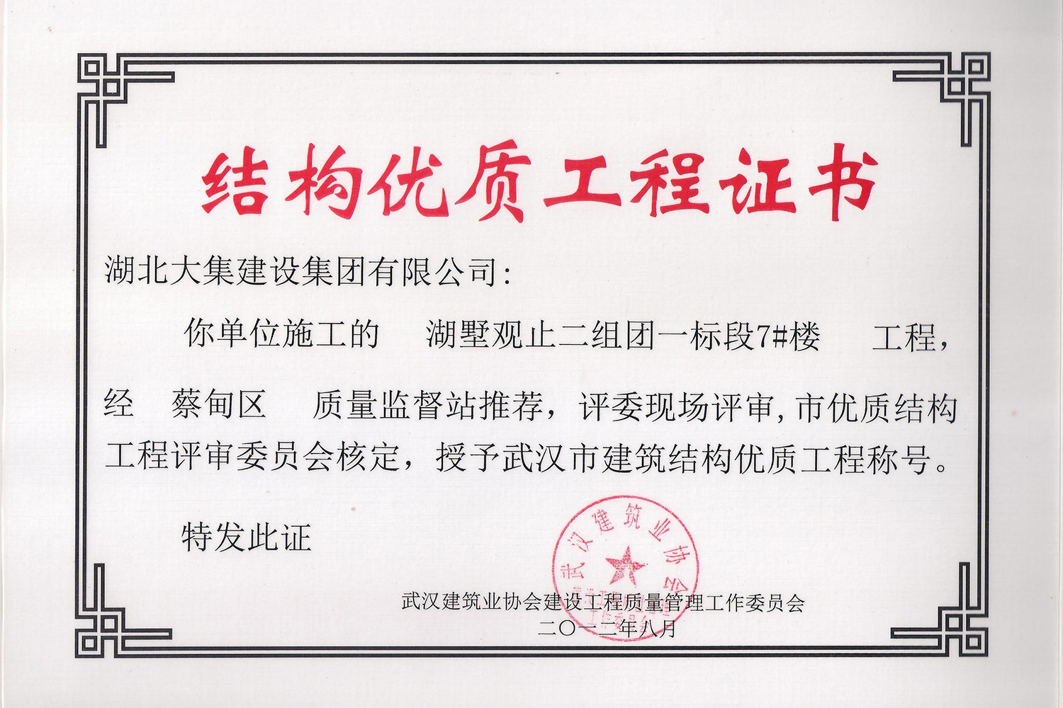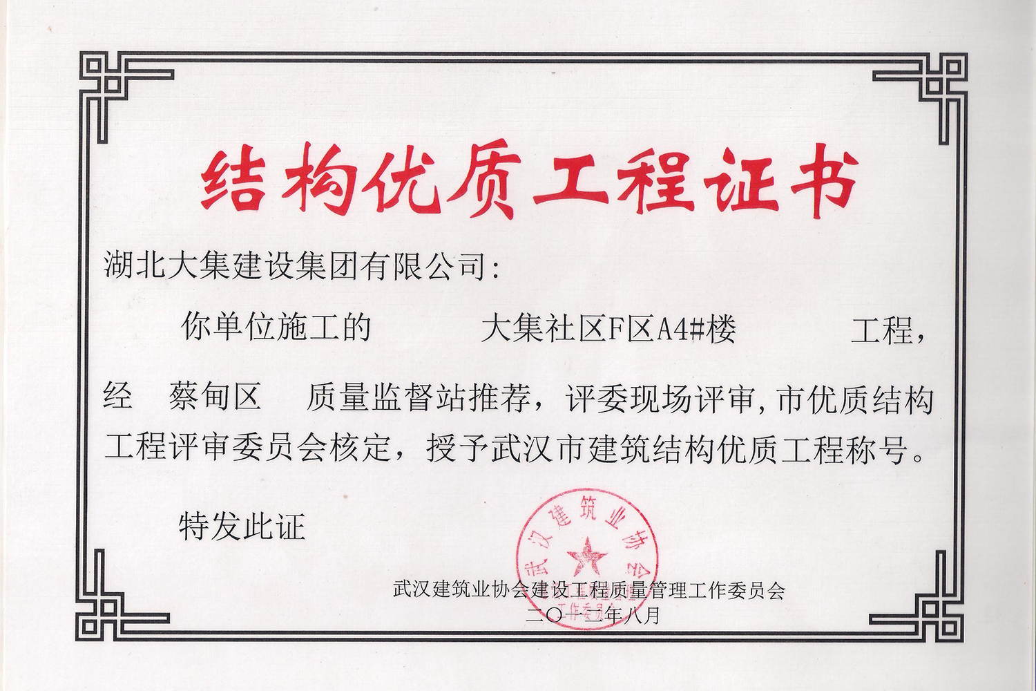 集團秉持“安全是紅線,質(zhì)量是品牌,文明施工是形象”的企業(yè)宗旨,不斷加強全面管理,注重提高自身素質(zhì),以完美的履約、優(yōu)良的質(zhì)量、滿意的服務(wù),贏得了信譽。近年來,湖北大集建設(shè)集團先后與中石化集團、中鐵上海工程局、中建八局、中鐵十二局、碧桂園集團、世茂集團、綠地集團等央企、國企、地方標志性建設(shè)單位合作,先后承建了“碧桂園知音豪庭”項目、“碧桂園光谷云境”項目、“大集G區(qū)蓮溪花園”項目等多個高層住宅小區(qū);承建了世茂龍灣46#、47#、48#地塊、花博匯桃李春風(fēng)二期等多個精品高端別墅群項目;承建了“南湖中學(xué)”、“南湖小學(xué)”、“南湖幼兒園”、“博奧幼兒園”等多個教育配套項目;承建了“孝感英眾超算終端科技產(chǎn)業(yè)園”、“鴻盛華全球航空服務(wù)產(chǎn)業(yè)園”、“盟盛汽車產(chǎn)業(yè)園”、“中原印務(wù)晶毅”等多個具有特殊設(shè)備安裝需求的鋼、混結(jié)構(gòu)工業(yè)廠房項目;承建了“常福商務(wù)廣場”等大型商業(yè)綜合體;承建了后官湖綠道二期、三期,常貴路西延伸段、黃星大道等多條大型道路市政項目;自主開發(fā)了“聚盛晶尚”住宅項目,改善人居環(huán)境,引領(lǐng)綠色棲居新領(lǐng)域;所有工程嚴格執(zhí)行施工作業(yè)全過程質(zhì)量、安全管理,多個項目被省、市級監(jiān)管單位授予“省結(jié)構(gòu)優(yōu)質(zhì)”、“省安全文明施工現(xiàn)場”、“市結(jié)構(gòu)優(yōu)質(zhì)”、“市安全文明施工示范項目”、“樣板工地”等榮譽稱號。