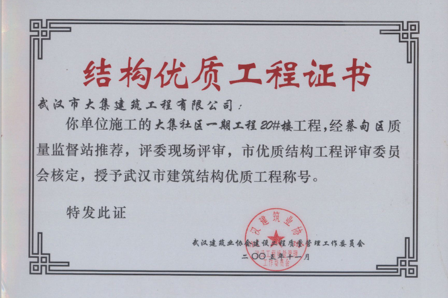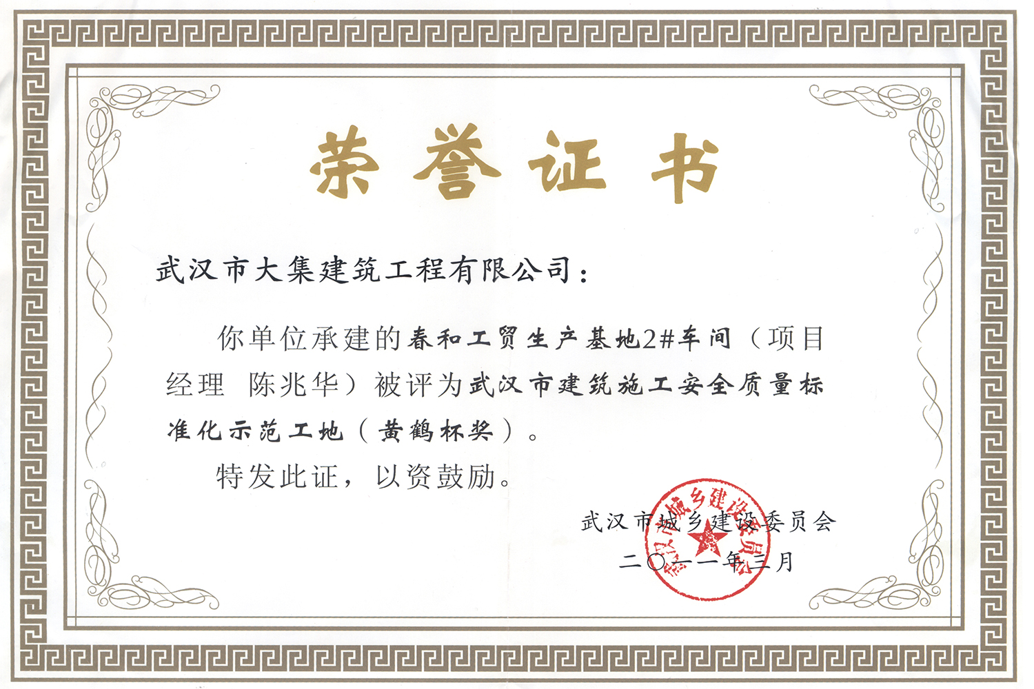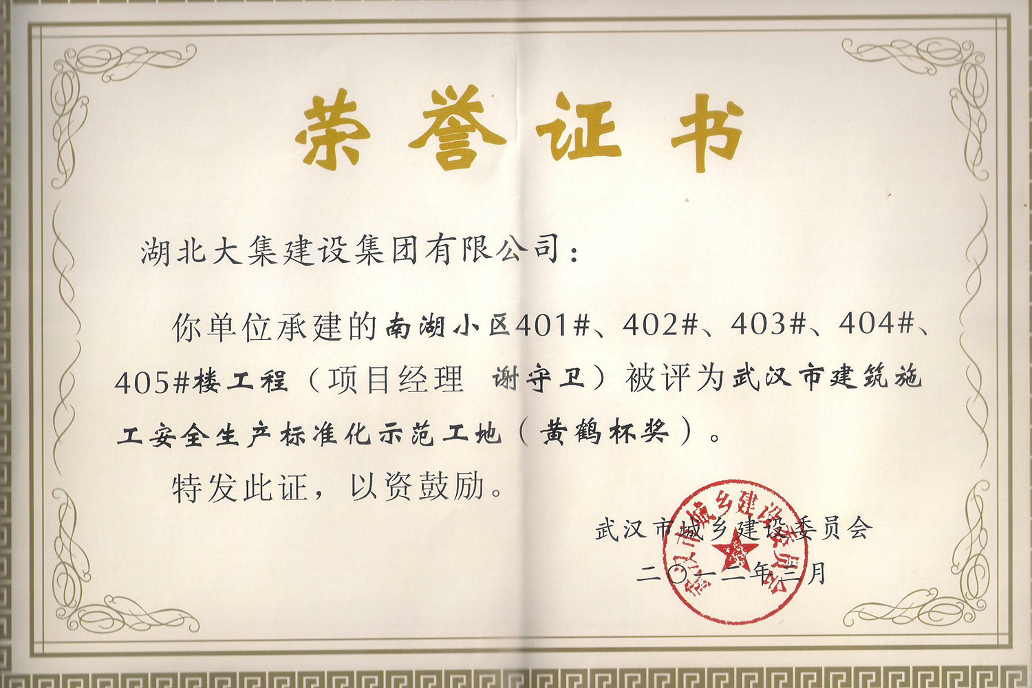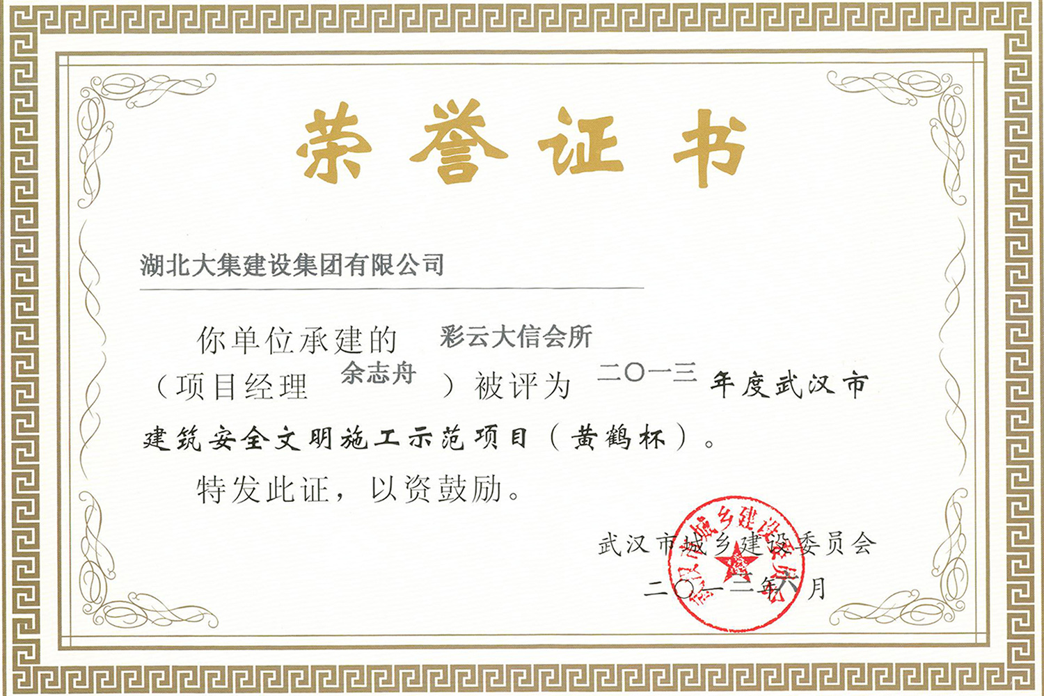集團在發(fā)展壯大的同時,堅持守法經(jīng)營、依法納稅,堅持履行社會責(zé)任,多年來積極投身社會公益事業(yè)。省、市、區(qū)行業(yè)主管部門連續(xù)多年授予公司為“武漢地區(qū)建筑業(yè)AAA信譽企業(yè)”、“武漢地區(qū)建筑業(yè)優(yōu)秀企業(yè)”、“武漢市最具成長性民營建筑企業(yè)”、“勞動保障守法誠信A級單位”等榮譽,多次被省、市工商局評為“守合同重信用”企業(yè),多年被地方政府授予“納稅貢獻獎”。
