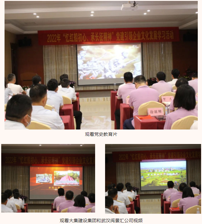 為慶祝建黨101周年,進(jìn)一步推進(jìn)黨史學(xué)習(xí)教育,增強(qiáng)隊(duì)伍凝聚力、向心力與戰(zhàn)斗力,湖北大集建設(shè)集團(tuán)聯(lián)合武漢閱景匯公司于6月16日上午共同開展2022年“憶紅船初心,承長征精神”黨建引領(lǐng)企業(yè)文化發(fā)展學(xué)習(xí)活動,兩家公司的全體黨員、入黨積極分子以及中高層領(lǐng)導(dǎo)、優(yōu)秀骨干員工參加了學(xué)習(xí),會議由湖北大集建設(shè)集團(tuán)黨支部書記徐遠(yuǎn)征主持。