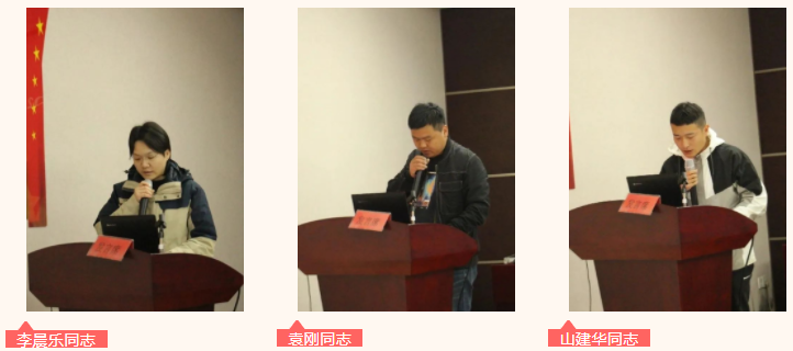 集團黨支部書記徐遠征同志作了總結(jié)講話,肯定了三名同志在思想、學(xué)習(xí)、工作上取得的進步。徐遠征同志強調(diào),作為黨員發(fā)展對象和入黨積極分子,要牢記入黨初心,從一言一行中體現(xiàn)對黨忠誠、為黨工作;要進一步加強學(xué)習(xí),把學(xué)習(xí)作為終生的追求,不斷提高黨性修養(yǎng),提高政治理論學(xué)習(xí),并時刻按照一名合格黨員的標(biāo)準(zhǔn)要求自己,戒驕戒躁,克服缺點,在職工群眾中發(fā)揮黨的先鋒模范作用,用行動來積極踐行一名合格黨員的責(zé)任和義務(wù),無愧于黨的培養(yǎng)和信任;要結(jié)合實際工作,腳踏實地,在實踐中加強鍛煉,不斷提升工作能力,在工作中經(jīng)風(fēng)雨、長才干,不斷增強化解難題的能力,為公司發(fā)展奉獻自己的力量。