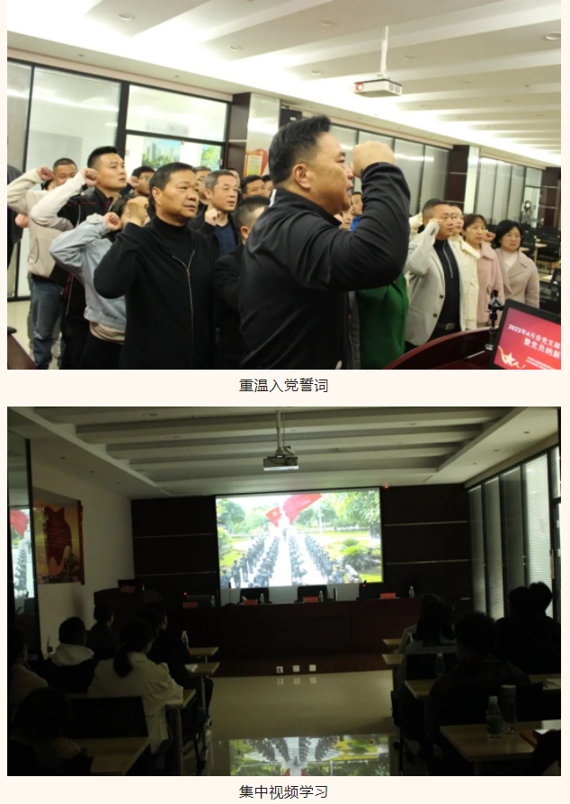 會議第二項議程,召開了4月份支部主題黨日活動。會議上,全體黨員起立奏唱國歌,并重溫入黨誓詞。集團黨支部書記宣讀了中共蔡甸區(qū)委組織部《2023年4月份黨支部主題日重點學(xué)習(xí)內(nèi)容》后,大家集中視頻學(xué)習(xí)了《如何推進國家安全體系和能力現(xiàn)代化》內(nèi)容。