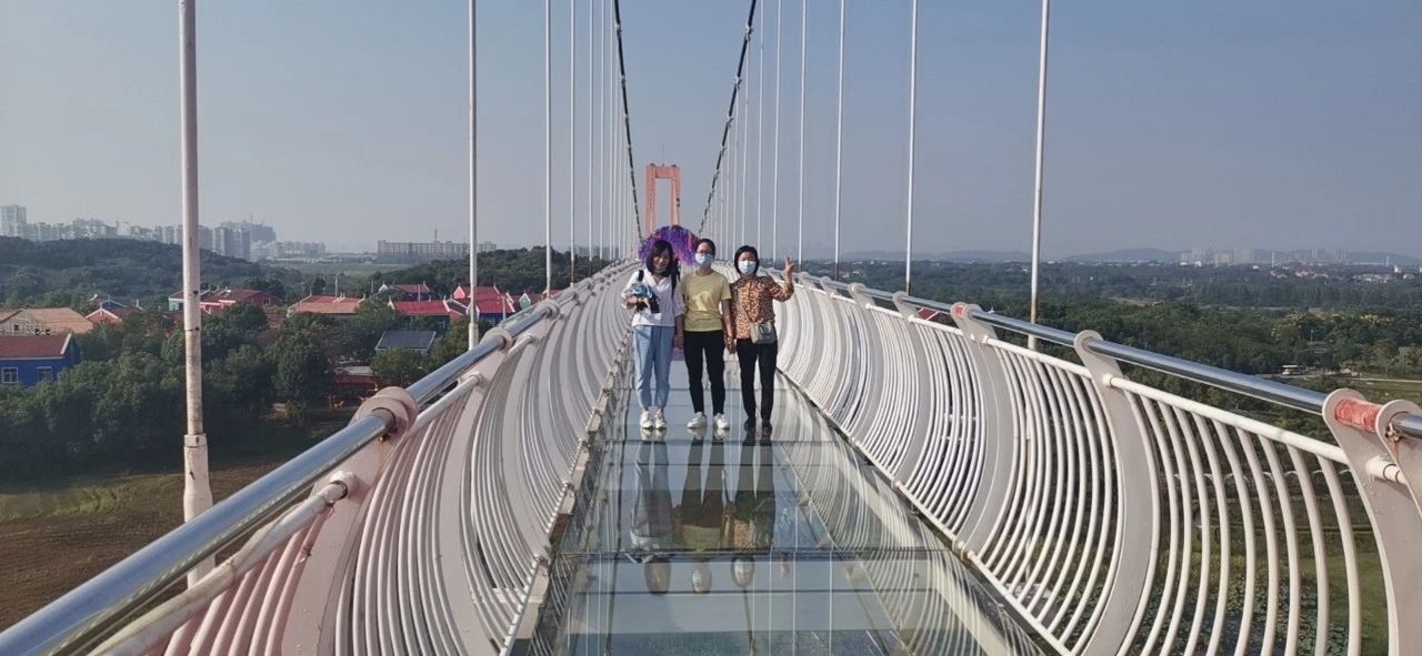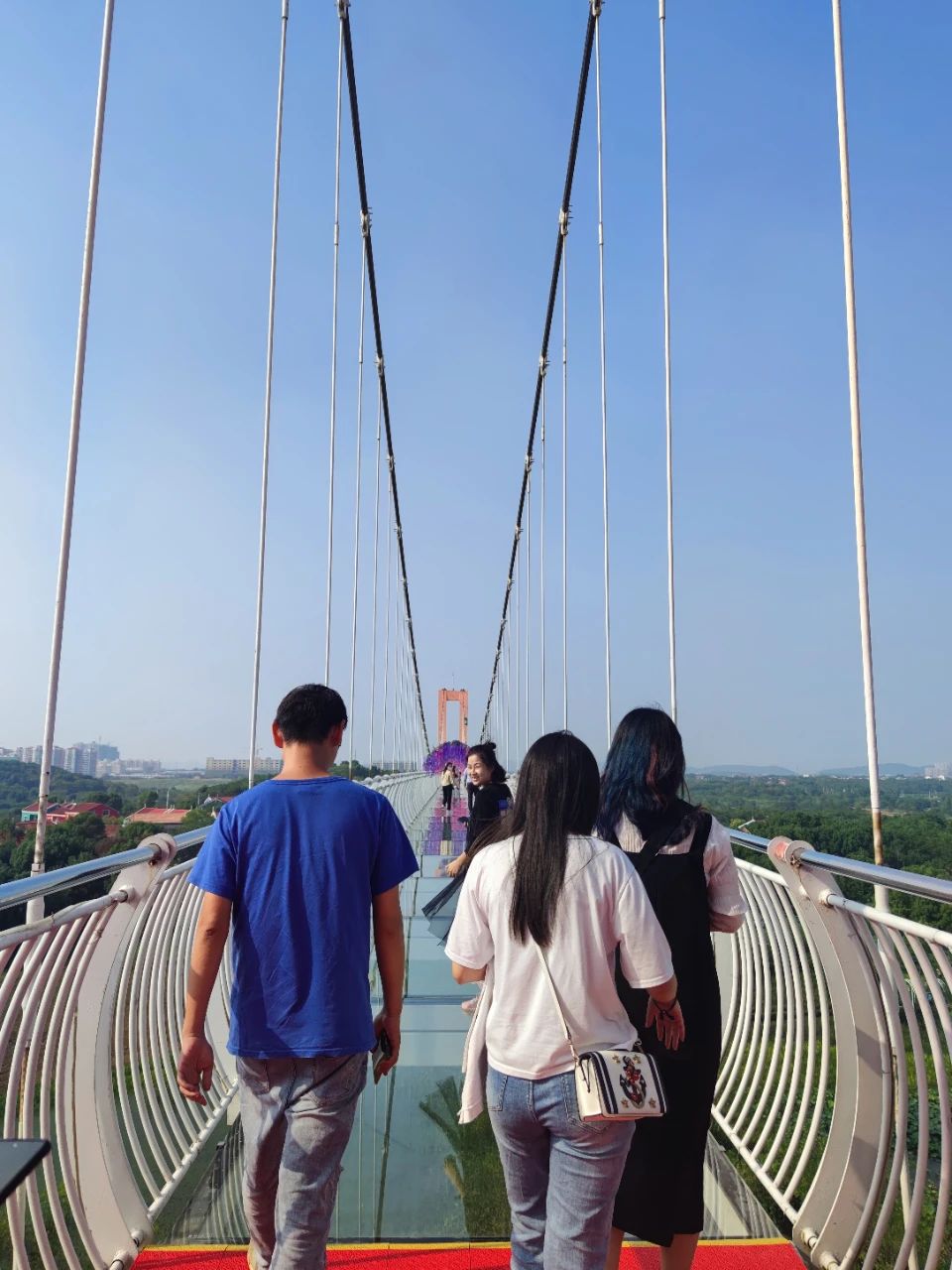 凌空虛步,在幾十米的高空中攝空而行,有人閑庭信步,有人頭暈腿軟,大家在歡笑打趣、互幫互助中感受刺激和溫暖;